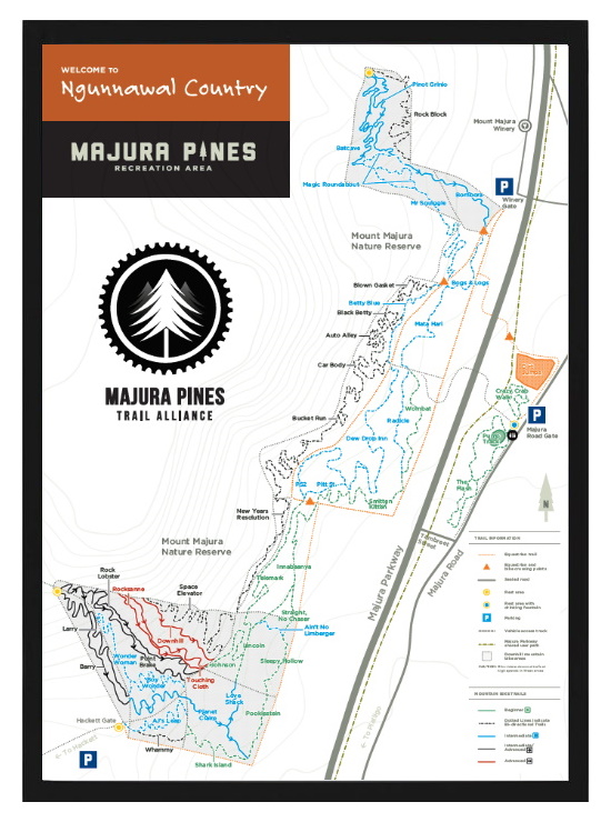 Support Majura Pines Trail Alliance and get a piece of Majura artwork for your office, shed or workshop wall. Printed on Premium paper, use this map to plan your next ride or dream of somewhere you'd rather be.