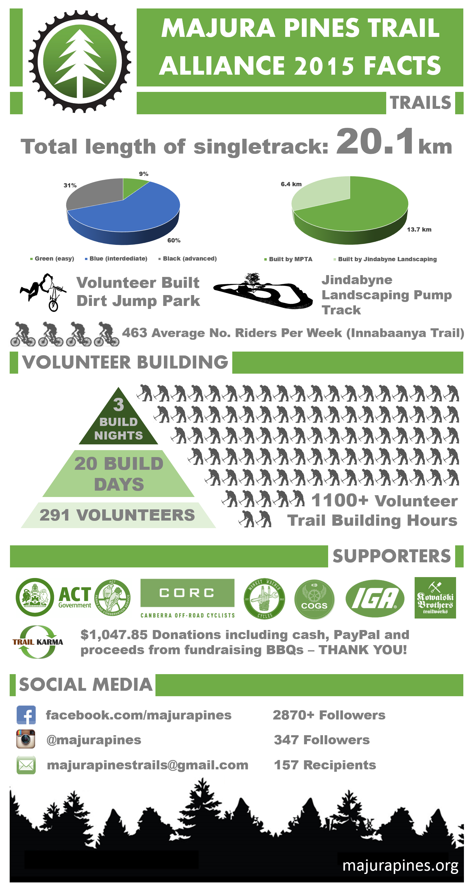 Jindabyne Landscaping have been announced as the contractor to complete the professional scope of works at Majura Pines. This consists of 3 downhill trails, including Winery hill, and the skills area. They will commence work on 19th January 2015 and aim to be completed by April 2015.