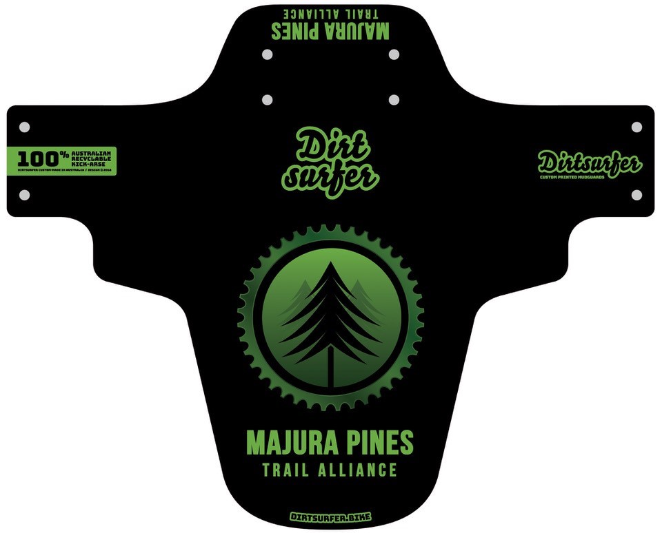 Support the Majura Pines trails whilst keeping crud out of your eyes and fork seals with these great looking mudguards from Canberra based company Dirtsurfer. They are Australian made and recyclable. Suits all mountain bike wheel sizes from 29″ down to 26″. Installed with 4 zip ties (provided).