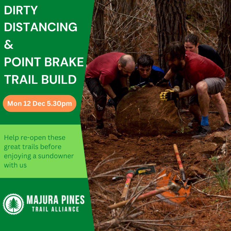 We’ll be out there from 5.30pm onwards but come on down when you can. We’ll start at the bottom of Point Brake (near to the bottom of Rock Lobster) and work our way back up. If you arrive late, grab a tool and walk up the trail until you find us. All welcome.