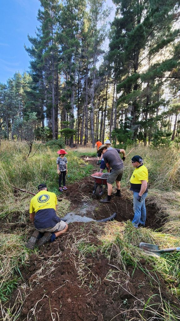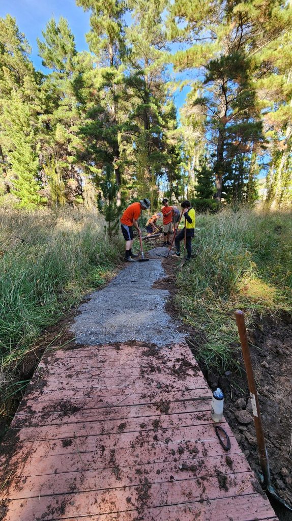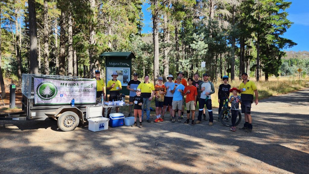 A big thanks to the hard working group of volunteers who beat the heat to fix up The Flash this morning. This trail is the first that many people ride – whether it is on their first visit to Majura, or even their first ride off road. However, the far south end really suffers in a wet winter. We prefer not to get out the nuclear option of blue metal gravel, but in this instance it was warranted. Before we spread the gravel we fixed the trail properly installing another short bridge and digging a culvert and several drains and then raised the trail up with all the dirt we had dug out. This fix should be good for many many years.