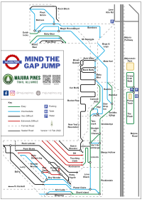 What started out as a bit of fun – sketching the Majura Pines trails in the style of Harry Beck’s iconic London Underground transport map – became one of our most popular social media posts. Many people requested that we create a version as a full directional trail map. Whilst, obviously, not geographically accurate it is easy to see the appeal schematic diagrams to simplify complicated systems and there are not many places more complicated than the southern end of Majura Pines. None of the Majura Pines trails are particularly long so you are only really navigating to the next junction, which this map shows.